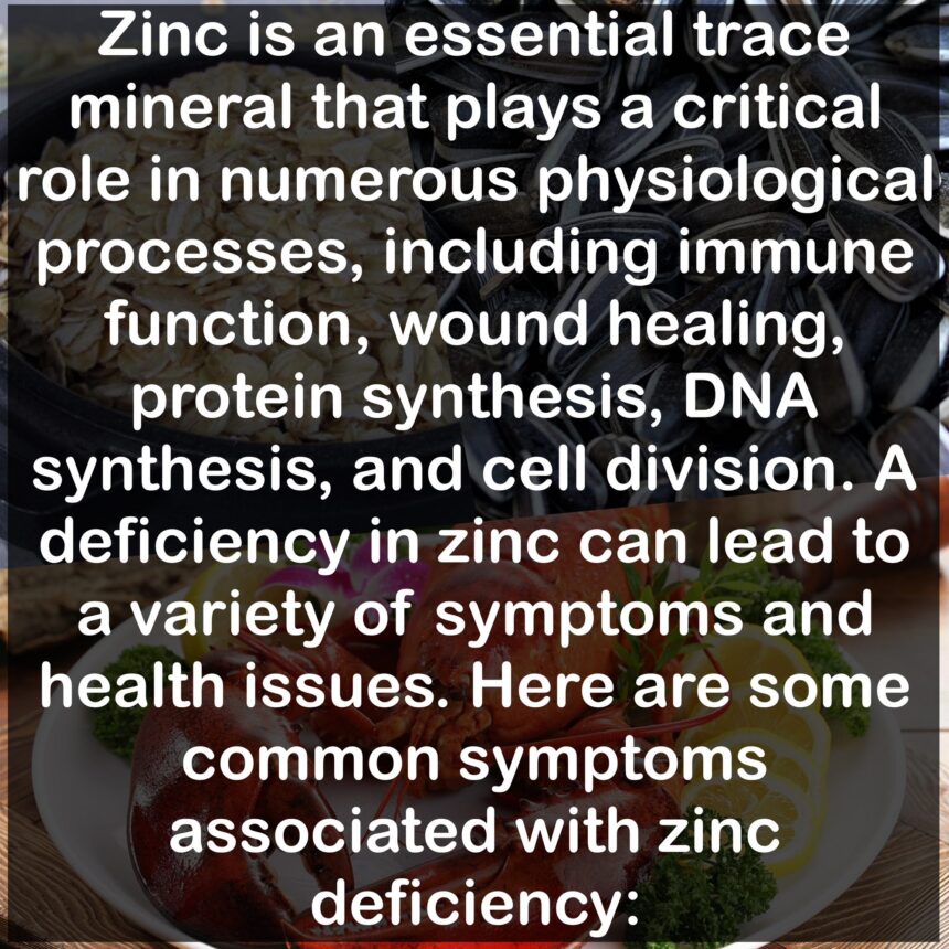 Zinc is an essential trace mineral that plays a critical role in numerous physiological processes, including immune function, wound healing, protein synthesis, DNA synthesis, and cell division. A deficiency in zinc can lead to a variety of symptoms and health issues. Here are some common symptoms associated with zinc deficiency:
