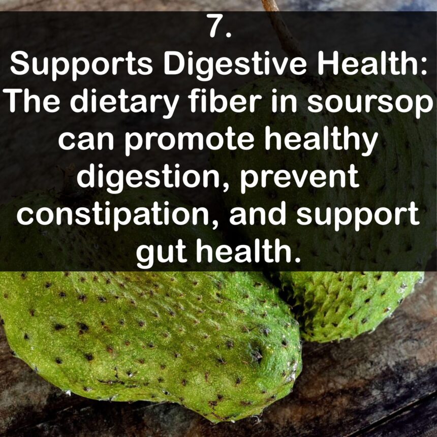 Soursop Benefit: Supports Digestive Health Lewis Leave a comment Previous Next Follow us 7. Supports Digestive Health: The dietary fiber in soursop can promote healthy digestion, prevent constipation, and support gut health. Follow us Return to Soursop Benefit: Supports Digestive Health