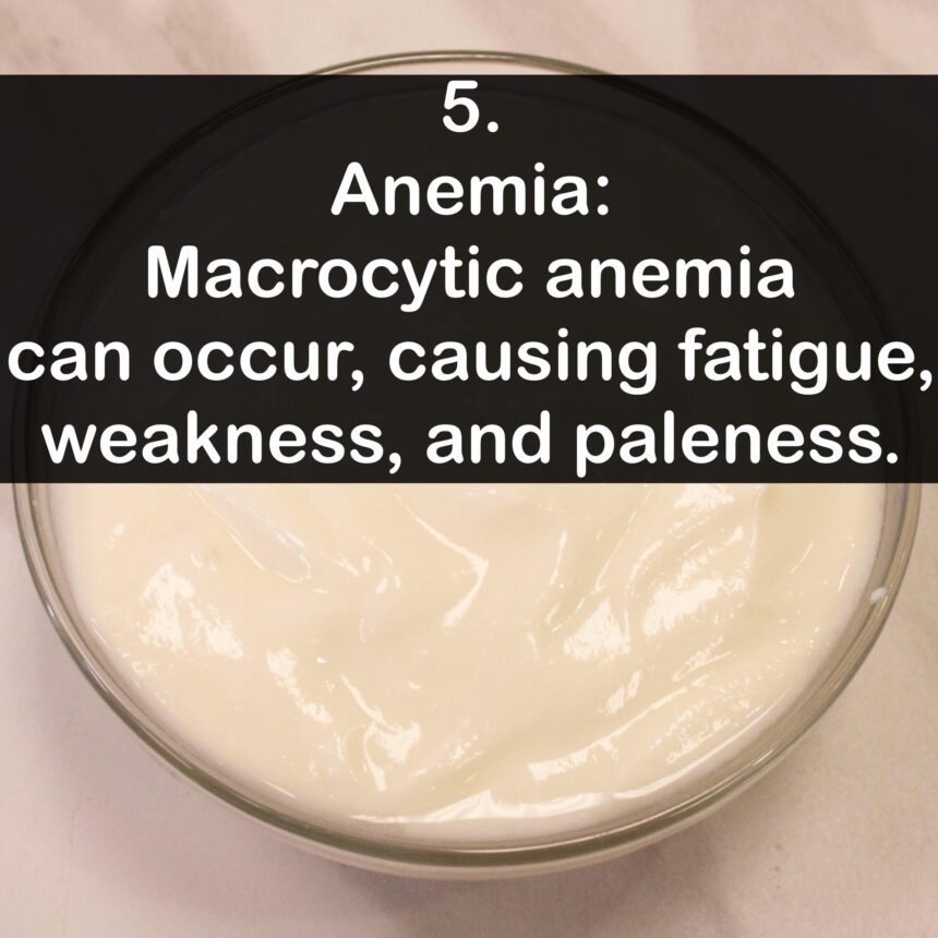 Vitamin B12 Deficiency Symptom: Anemia Lewis Leave a comment Previous Next Follow us 5. Anemia: Macrocytic anemia can occur, causing fatigue, weakness, and paleness. Follow us Return to Vitamin B12 Deficiency Symptom: Anemia